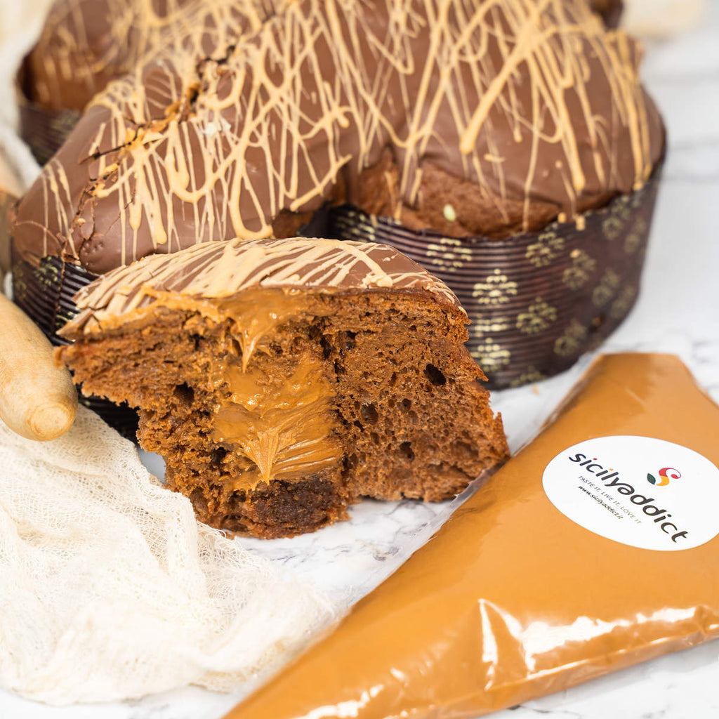 La colomba al caramello salato artigianale Ciokocaramel è una delle prelibatezze pasquali che SicilyAddict ha il piacere di presentare. Questa colomba artigianale è un'interpretazione unica e irresistibile del classico dolce pasquale, arricchita dal gusto avvolgente del caramello salato che si sposa perfettamente con la sofficità della pasta lievitata.
