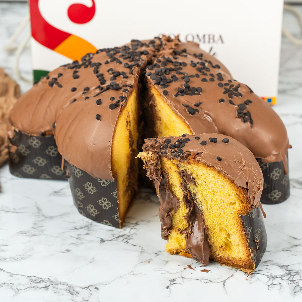 Realizzata con metodi artigianali e ingredienti selezionati per la loro qualità, la colomba al cioccolato artigianale farcita è un trionfo di sapori. Il cioccolato, protagonista indiscusso, si fonde con la soffice pasta lievitata della colomba, creando un equilibrio perfetto tra dolcezza e intensità.