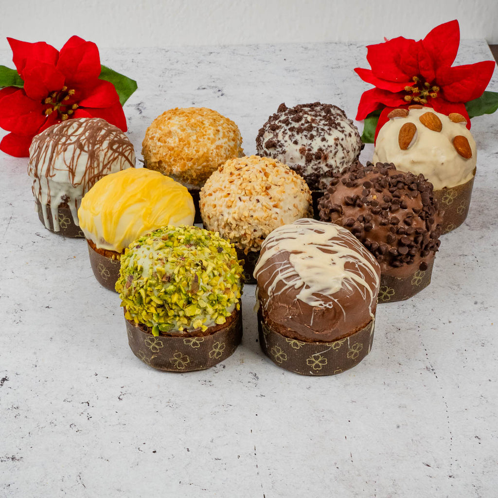 Immergiti nel gusto irresistibile del nostro panettoncino artigianale farcito ai Tre Cioccolati. Questa delizia da 150 grammi è un vero e proprio tributo all'amore per il cioccolato, un'esperienza sensoriale che coinvolge tutti i sensi.