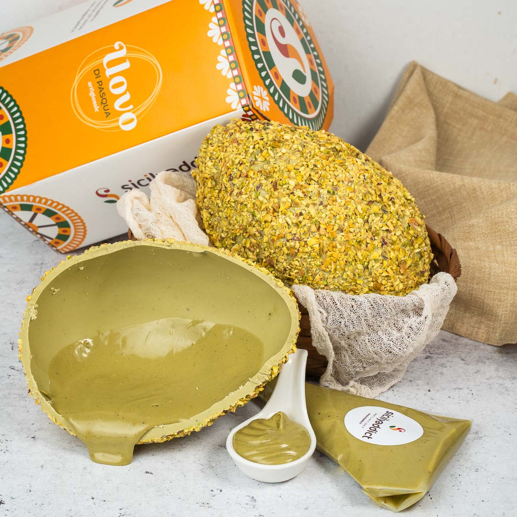 Scegliere un uovo di Pasqua al pistacchio artigianale SicilyAddict significa regalare o regalarsi un momento di puro piacere, dove la tradizione pasquale incontra l'eccellenza dei prodotti siciliani. Perfetto come regalo per i tuoi cari o come raffinata sorpresa per la tua tavola di Pasqua, questo uovo artigianale è una scelta di classe che saprà conquistare ogni palato.