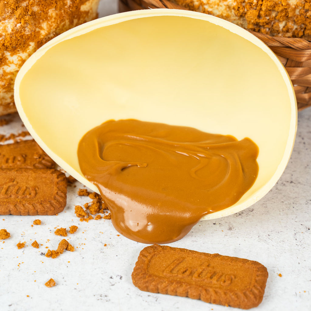Ricoperto da una croccante glassatura al cioccolato bianco e arricchito con pezzi di biscotto Lotus, l’Uovo Ciokolotus è un’esplosione di sapori e consistenze irresistibili. Ogni morso è un viaggio tra la dolcezza del cioccolato e la nota caramellata del biscotto, in un equilibrio di gusto che conquisterà grandi e piccini.
